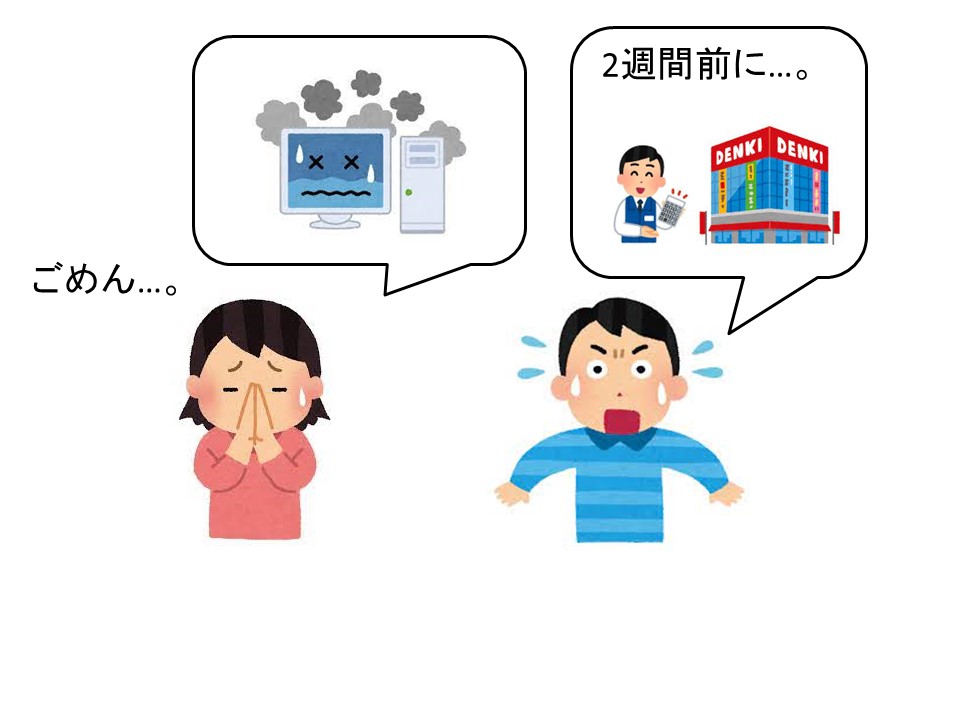 男の人は友達にパソコンを貸してあげました。2週間前に買いました。まだ新しいです。