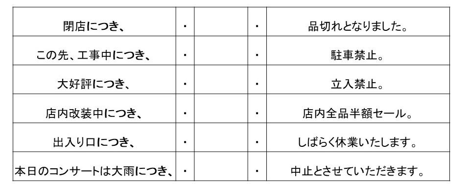 ※看板や掲示物などの通知文でよく使われる表現です。硬い表現なので日常会話で使われることはほとんどありません。