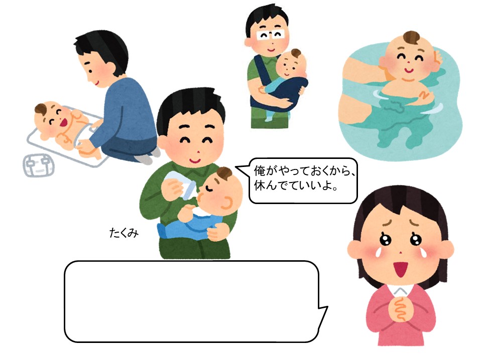 T:そうですね。赤ちゃんを沐浴させたり、ミルクをあげたり、おむつを替えたり…。イクメンですよね。