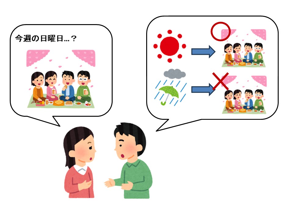S:晴れたらお花見をしますが、雨だったら、花見ができません。