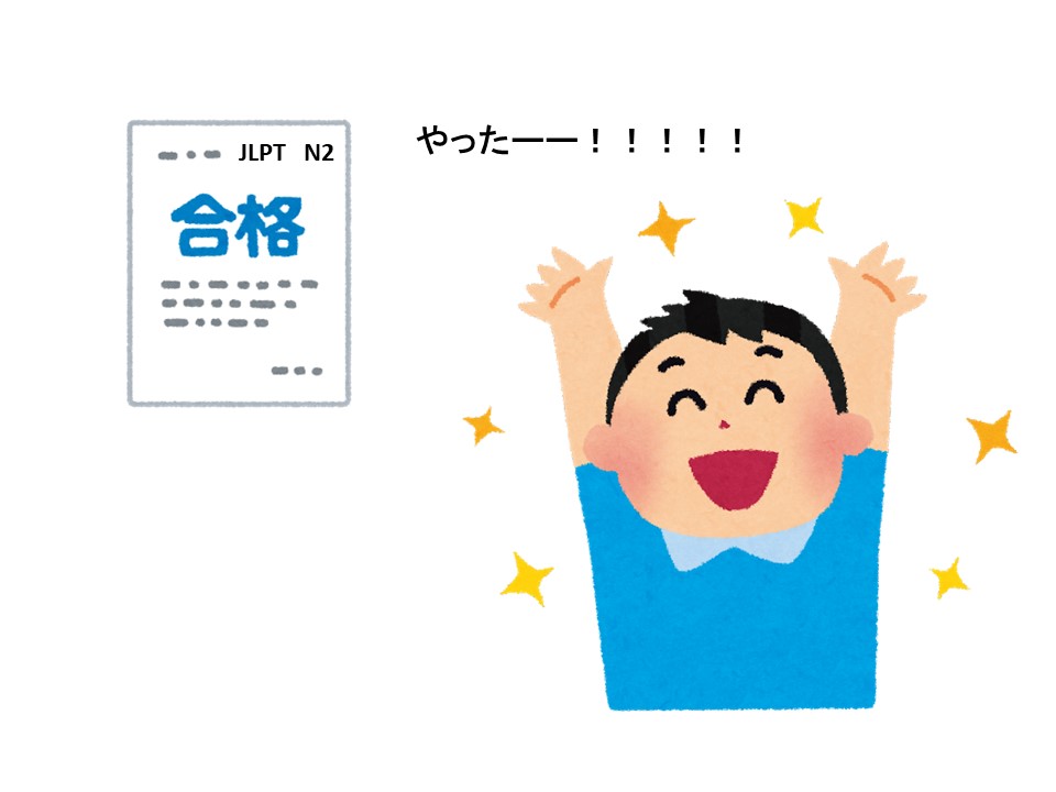 JLPTの合格通知が届いて、うれしさのあまり大声で叫んだ。
