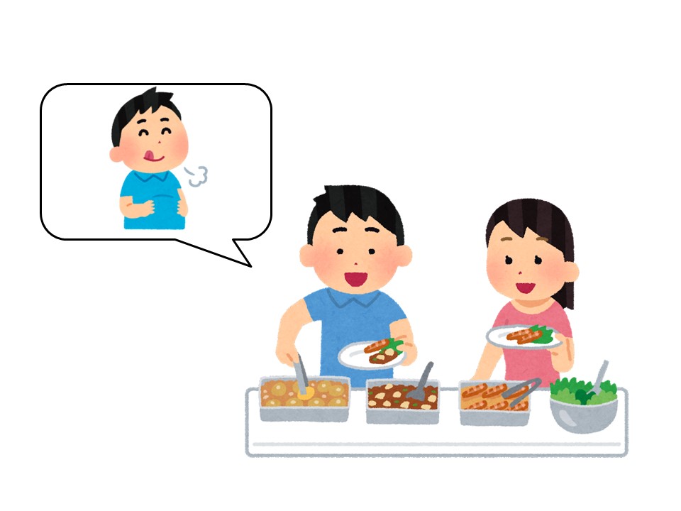 T:2人は食べ放題に来ました。食べ放題は一定の料金を支払うことで、指定された料理を時間内に好きなだけ食べられる食事サービスのことです。バイキングとも言われてます。