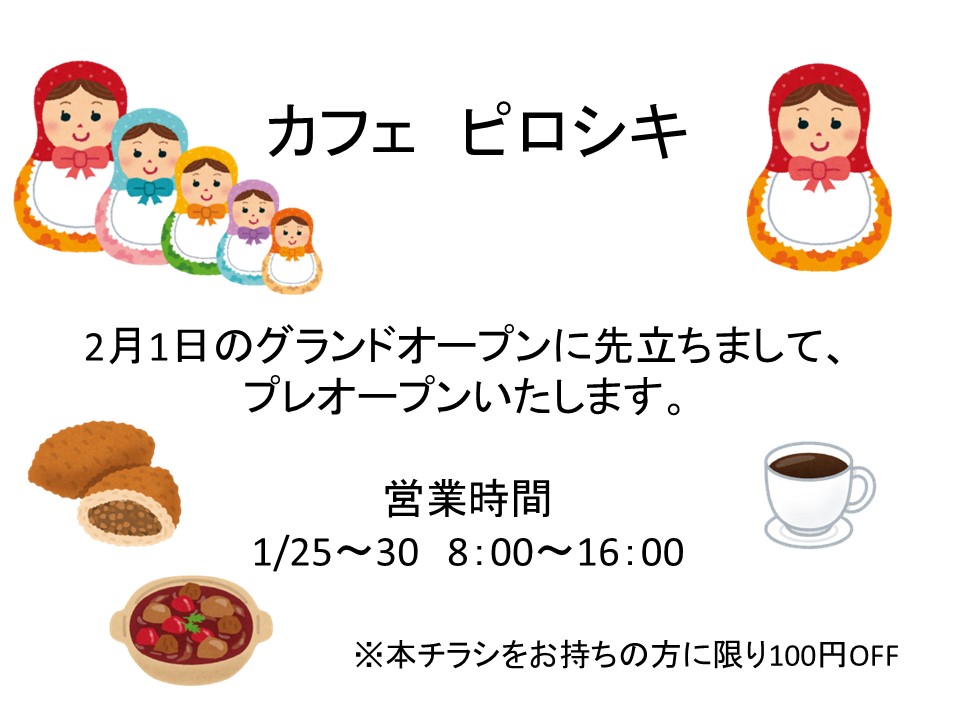 T:これはカフェのチラシです。もうすぐグランドオープンします。その前に何をしますか。
