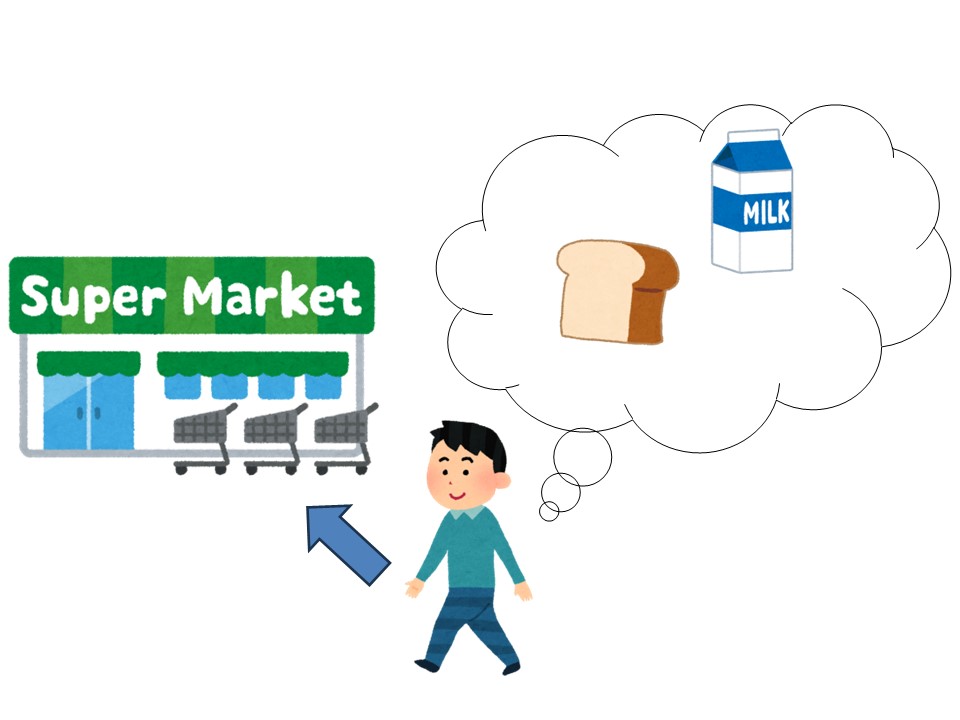 T:そうですね。スーパーへパンと牛乳を買いに行きます。