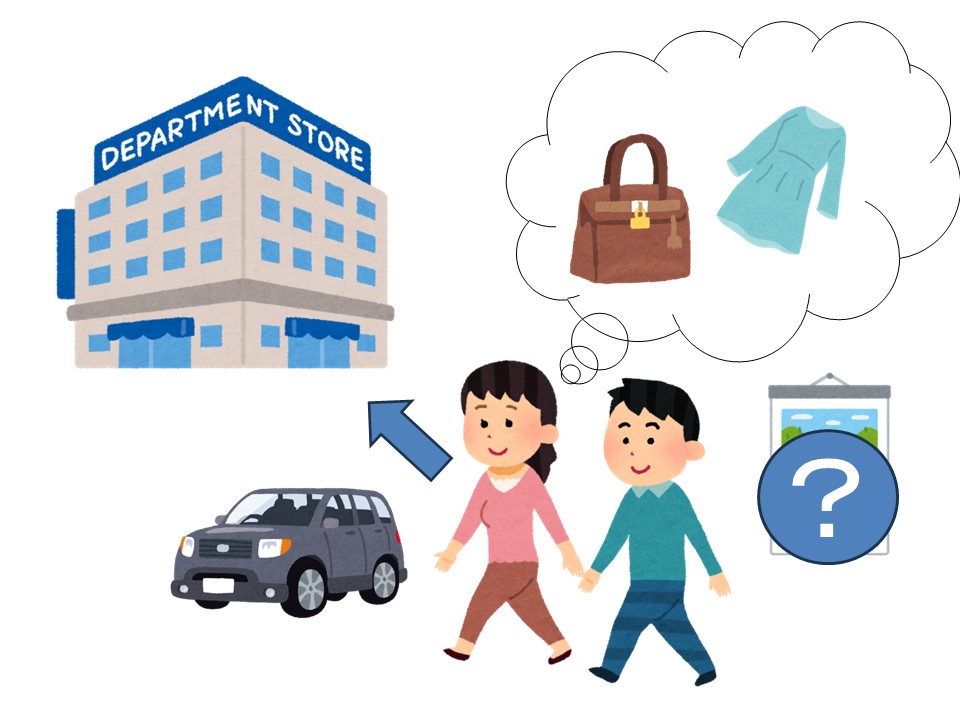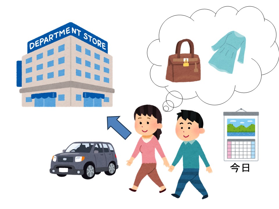 T:じゃあ、誰とデパートへ買い物に行きますか。