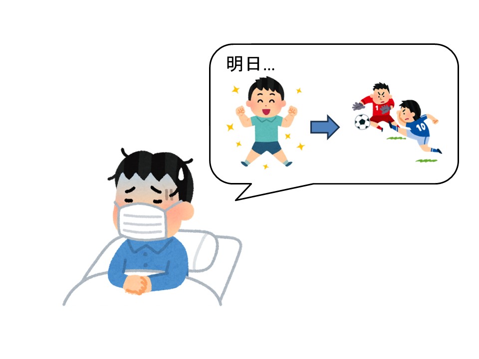 明日元気じゃなかったら、サッカーの試合に出ません。
