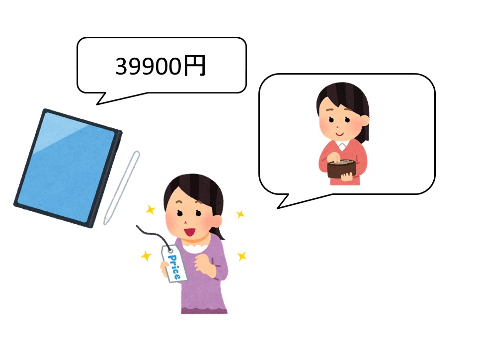 T:そうですね。じゃあ、こちらのタブレットはどうですか?39900円です。