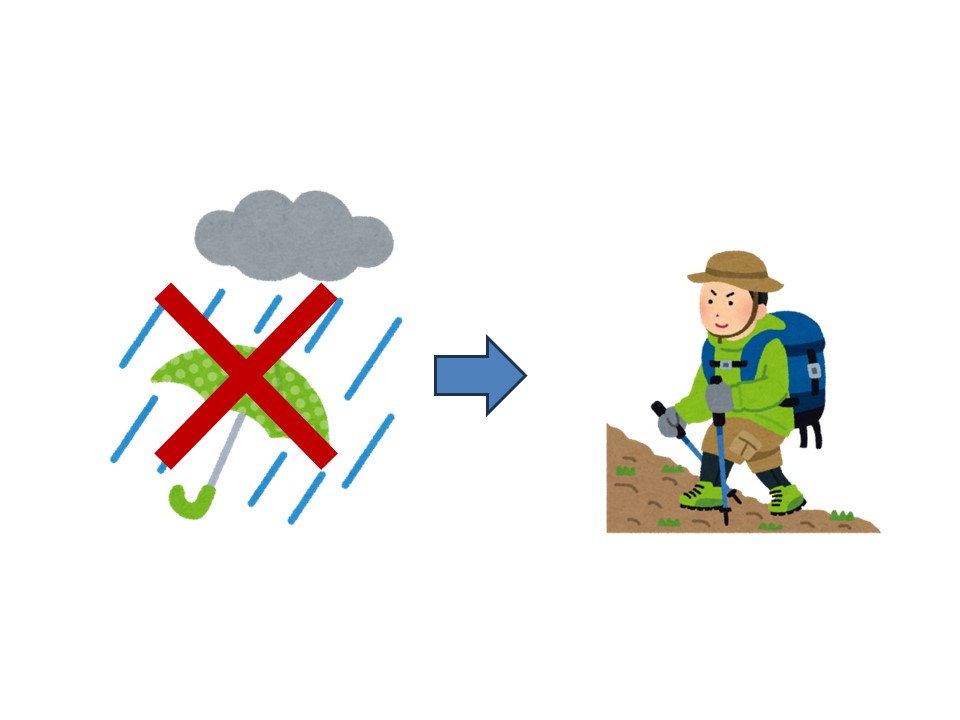 T:週末、登山をしたいです。でも、雨が降るかもしれません。雨が降ったら、登山をしません。雨が降らなかったら、登山をします。