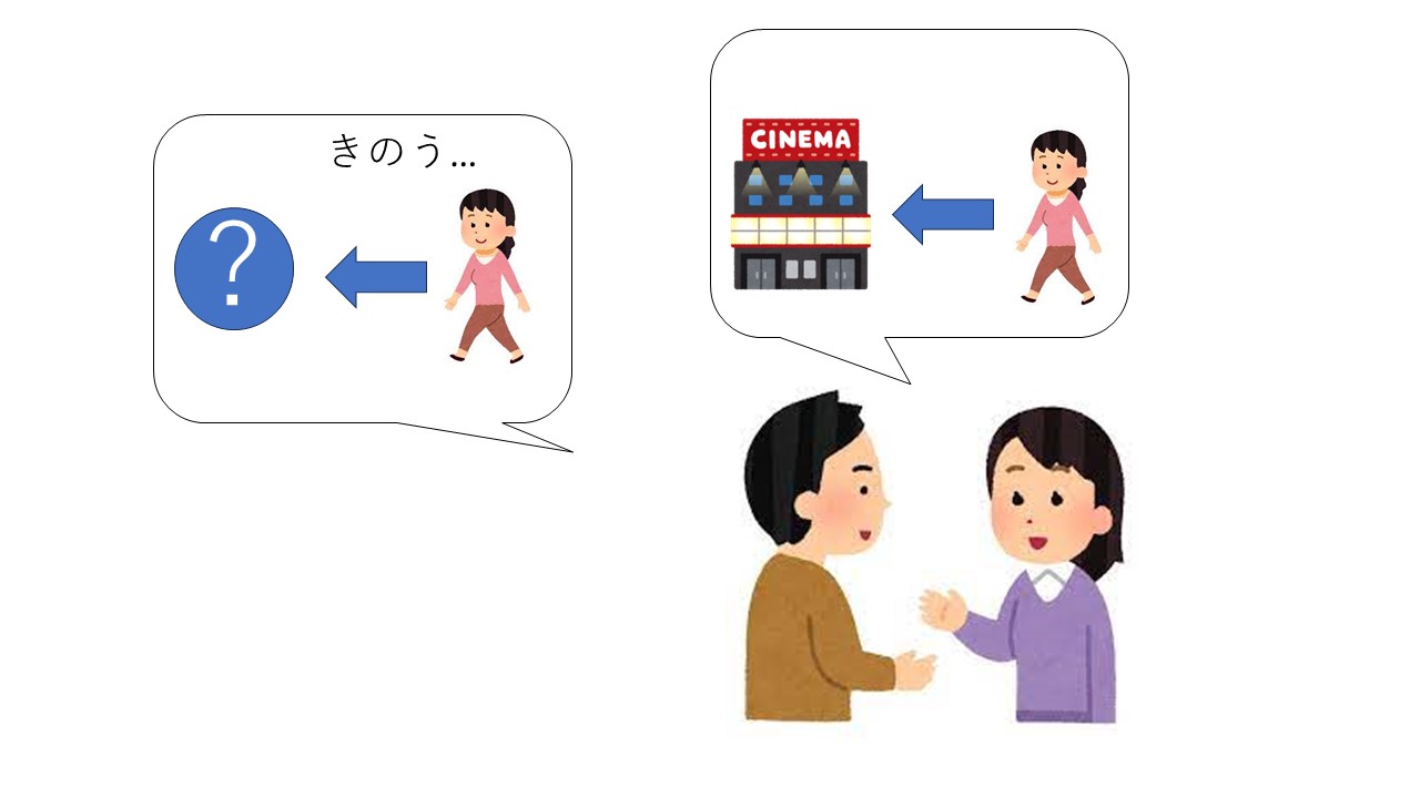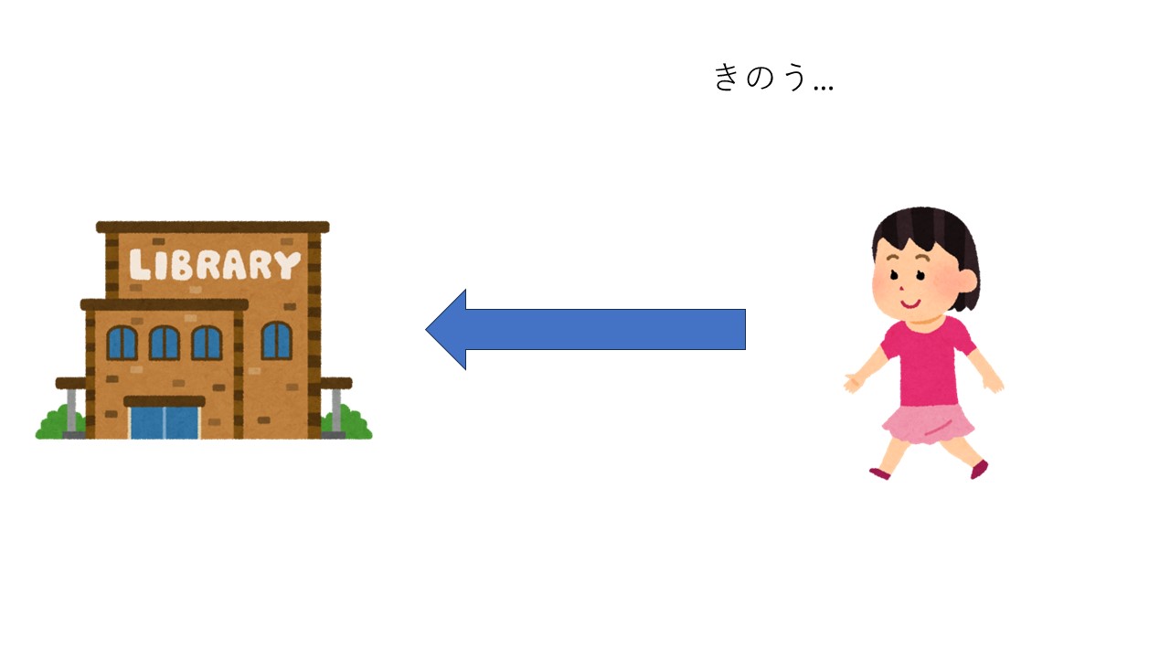 S:昨日、図書館へ行きました。