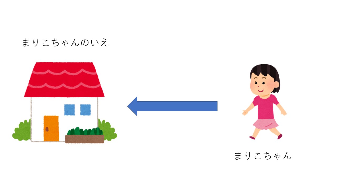 まりこちゃんは家へ帰ります。