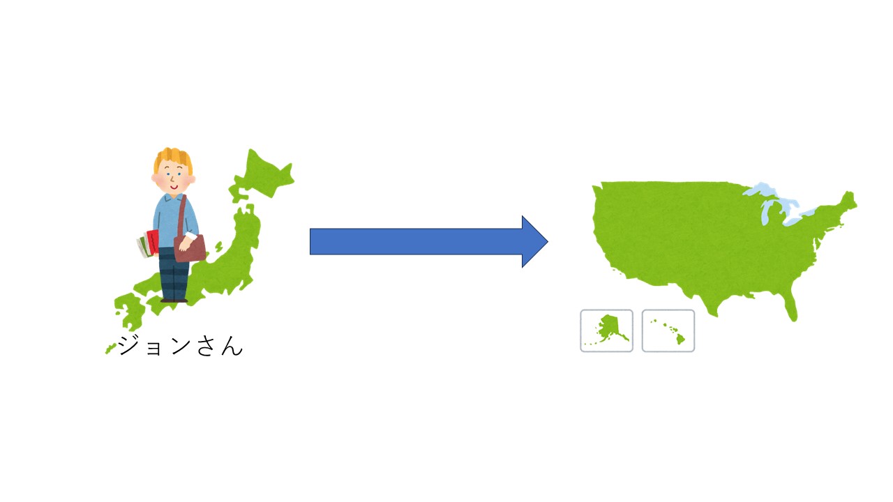 ジョンさんはアメリカ/国へ帰ります。