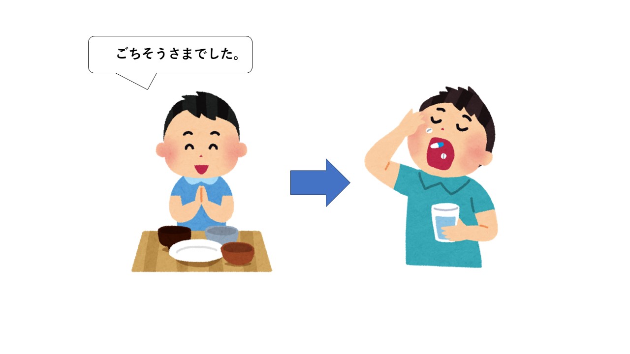 ご飯を食べたら、薬を飲みます。