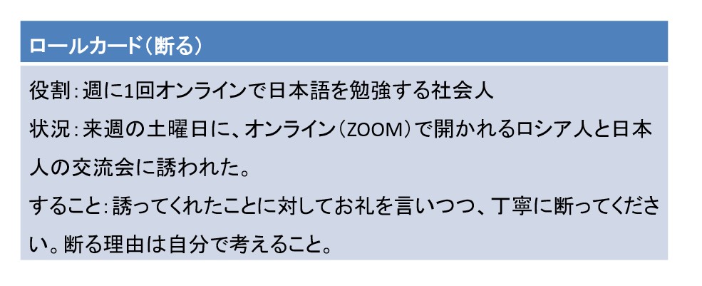 【教案】会話に挑戦!中級前期からの日本語ロールプレイ 第4課(断る)